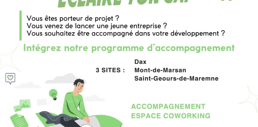 Porté par Domolandes, Agrolandes et Ccity, l’incubateur Éclaire Ton Cap accompagne les porteurs de projets et les jeunes entreprises à potentiel du territoire dans les premières phases clés de leur développement. Notre ambition est simple : aider les entrepreneurs à clarifier leur trajectoire, sécuriser leurs décisions et accélérer leur passage à l’action.