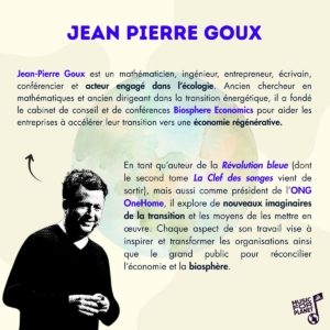 · 19h50 : Dialogue croisé entre Jean-Pierre Goux et Timothée Parrique sur les imaginaires et alternatives concrètes pour habiter la Terre autrement