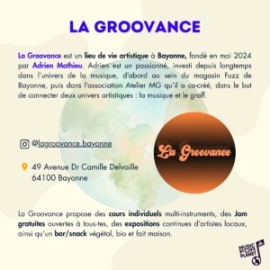 La soirée sera rythmée par La Groovance, lieu de vie artistique bayonnais, autour de respirations musicales et d’une jam session ouverte, prolongeant ainsi le dialogue intellectuel par une expérience artistique collective.